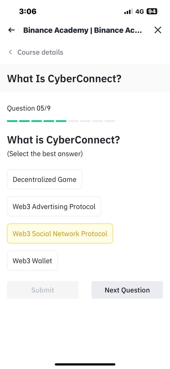 إجابات إختبار تعلم و اربح What Is CyberConnect على منصة بينانس وربح مجانى